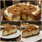 Apple Pie Stuffed Cheesecake is the ultimate fall dessert combining two classics in one. A creamy vanilla cheesecake is layered with spiced apple pie filling inside a buttery graham cracker crust, then topped with caramel and extra apple pie goodness.