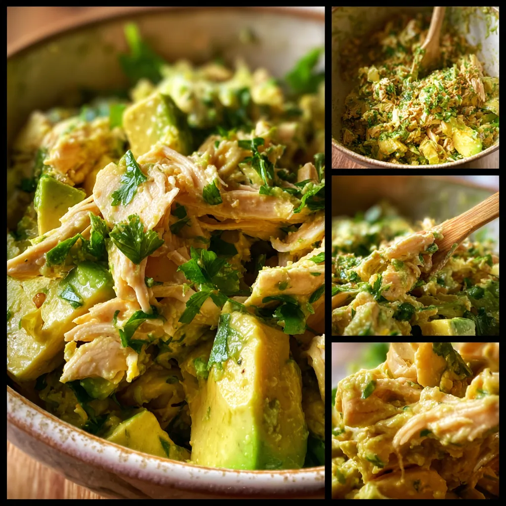 A fresh and creamy avocado chicken salad made with tender chicken, ripe avocados, and a light, flavorful dressing—perfect for a healthy lunch or dinner.