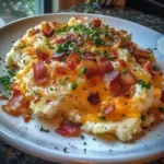 Rich and creamy mashed potatoes loaded with crispy bacon, sharp cheddar cheese, and green onions for a hearty and flavorful side dish.
