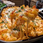 A creamy, cheesy baked mac and cheese with a spicy buffalo kick, loaded with tender cauliflower for a flavorful twist on a comfort food favorite.