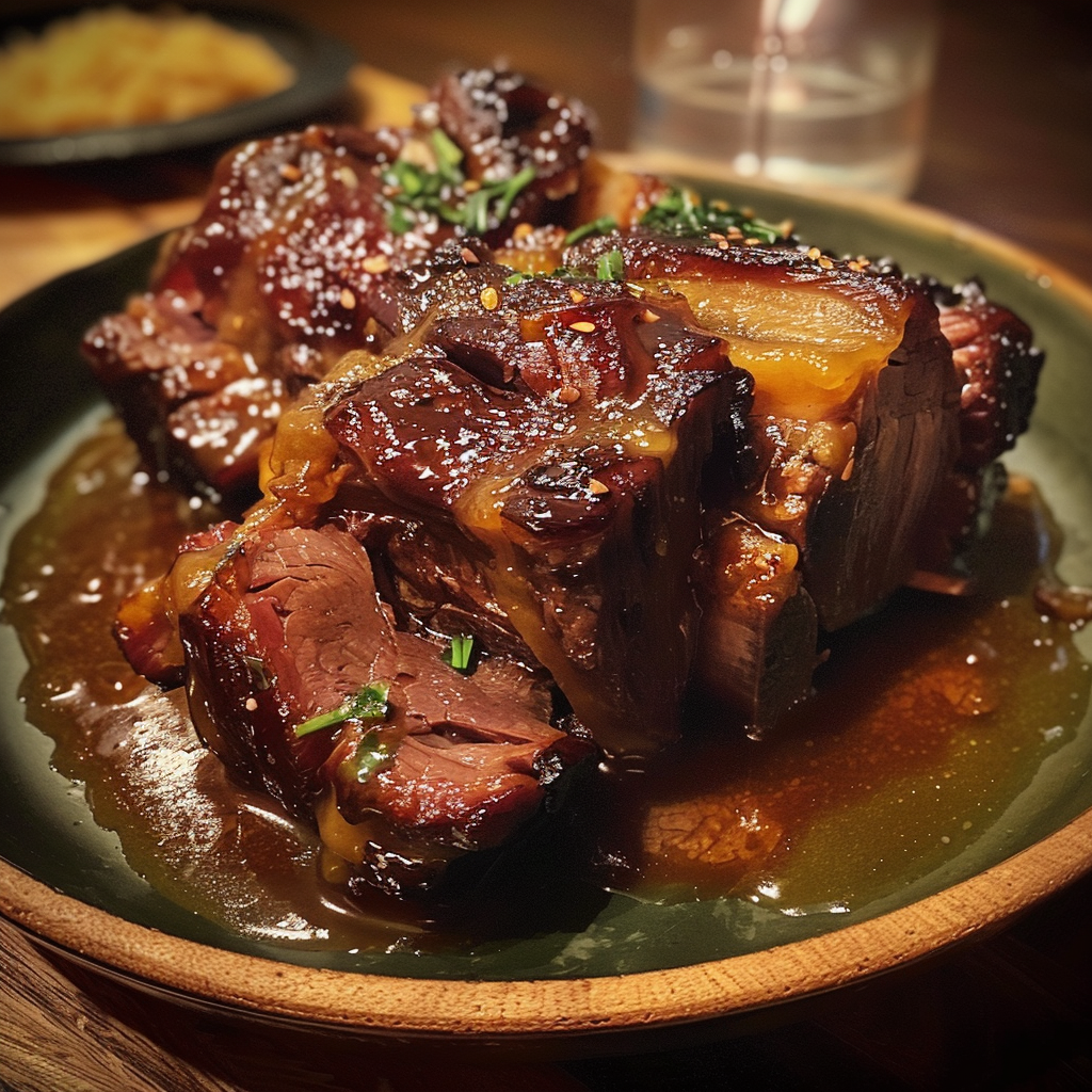 Rich, fall-apart tender beef short ribs slow-roasted in a deeply flavored Asian-style glaze and finished until caramelized and sticky — the ultimate comfort dish that balances sweet, savory, and umami flavors.
