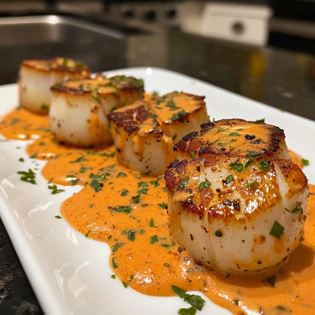 Seared Scallops with Spicy Cajun Cream Sauce – A Bold, Elegant Seafood Delight