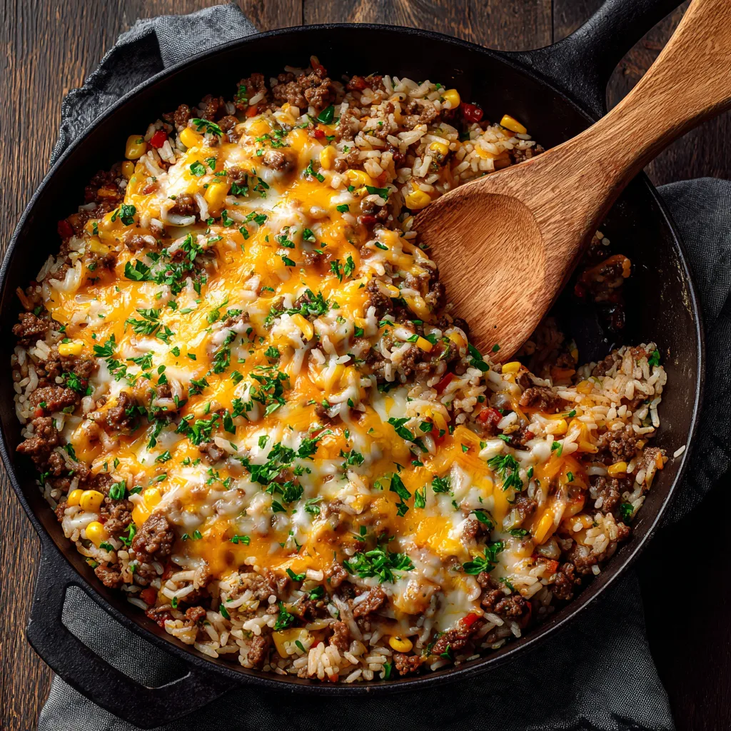 Cheesy Beef & Rice Skillet (One-Pan Comfort Food That’s Quick, Cheesy, and Irresistible)