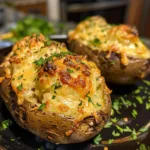 Crispy baked potatoes stuffed with a creamy, cheesy filling and baked again until golden and bubbly for the ultimate comfort food side dish.