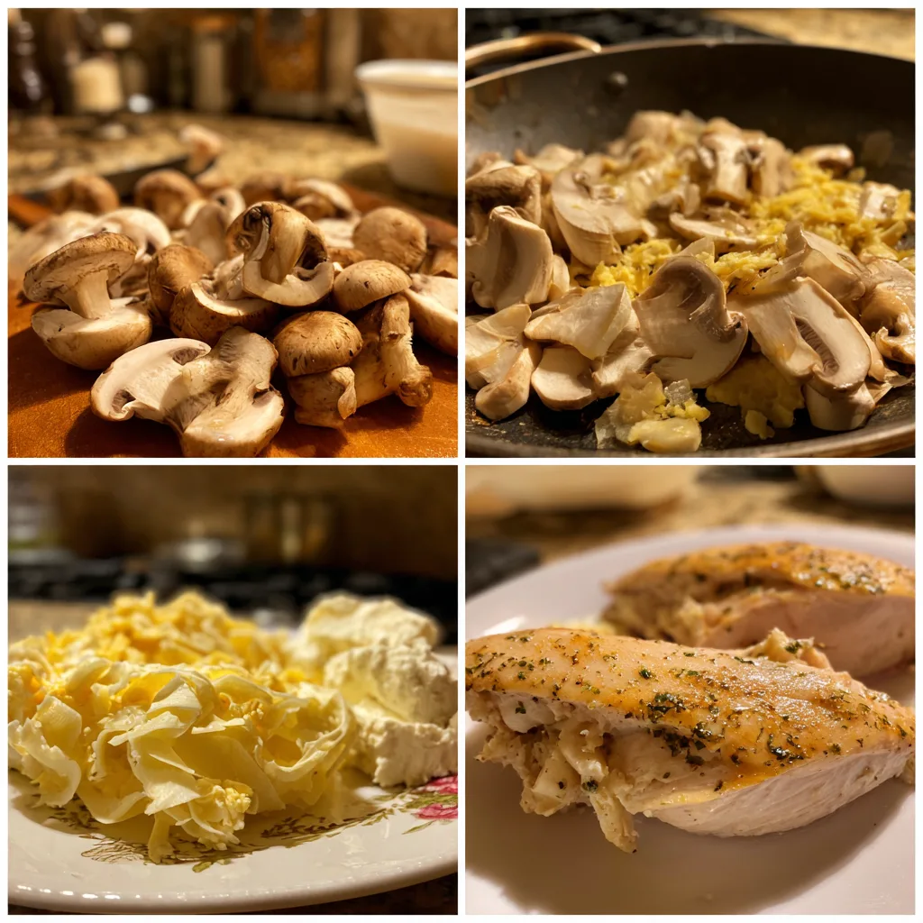Tender chicken breasts filled with a creamy garlic butter mushroom and cheese mixture, then seared and baked until juicy and golden. This rich, savory dish is perfect for a comforting dinner and pairs well with vegetables or mashed potatoes.