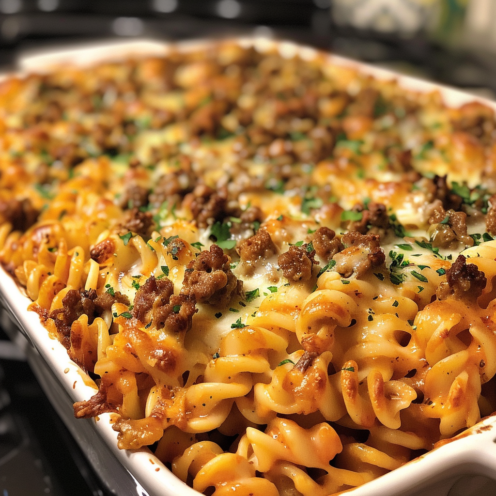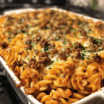 Cheesy Ground Beef Pasta Casserole is a hearty, soul-warming comfort dish made with seasoned ground beef, tender pasta, rich tomato sauce, and layers of gooey melted cheese. It’s a family-friendly dinner that feels like a warm hug in every bite.