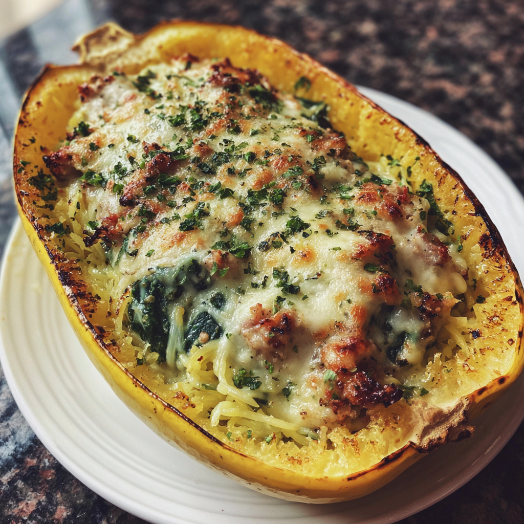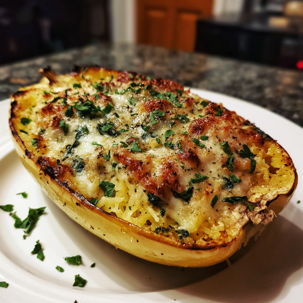 The star of the dish, spaghetti squash creates delicate, noodle-like strands when roasted. Its mild flavor serves as a perfect base for the rich filling.