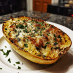 If you’re looking for a dish that’s both indulgent and wholesome, this Cheesy Spinach Stuffed Spaghetti Squash with Garlic Sage Butter is the perfect balance. It’s creamy, savory, and loaded with flavor, yet it feels surprisingly light. The natural sweetness of the roasted spaghetti squash pairs beautifully with the rich, garlicky sage butter and melty cheese. I love making this on chilly evenings when I crave something comforting but want to skip the heavy pasta. It’s a low-carb, gluten-free option that still satisfies every craving for a cheesy, buttery meal. Whether served as a main course or a decadent side, this dish transforms simple ingredients into something truly special.
