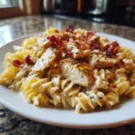 A rich and comforting pasta dish loaded with tender chicken, crispy bacon, creamy ranch-seasoned sauce, and melted cheese for the ultimate weeknight comfort meal.
