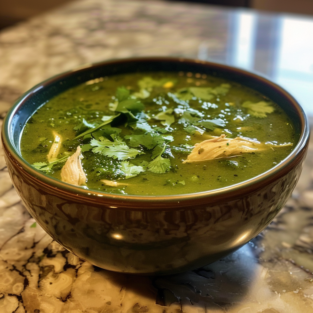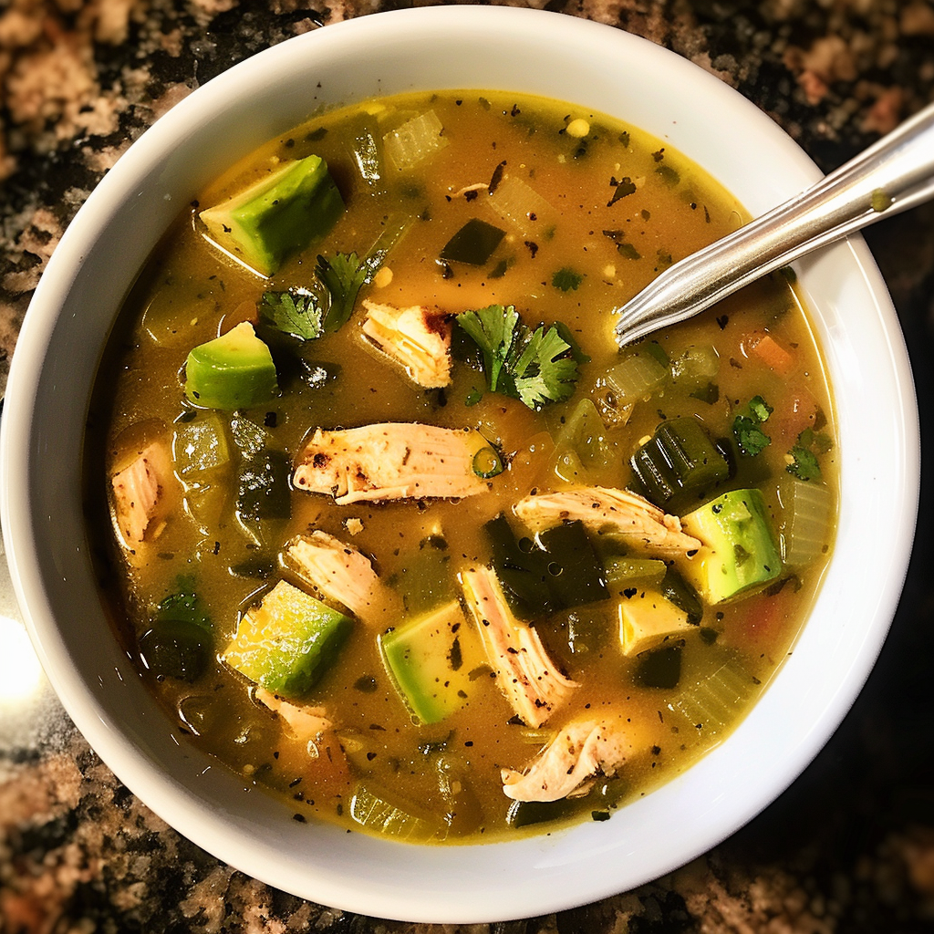 A creamy, comforting Chicken Poblano Soup featuring roasted poblano peppers, tender chicken, and warm Mexican spices.