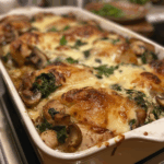 Chicken, Spinach, and Mushroom Bake is the kind of cozy, satisfying meal that feels like a warm hug. The creamy sauce, tender chicken, and savory vegetables come together in a dish that’s both nourishing and indulgent. It’s easy enough for a weeknight yet elegant enough for guests. Pair it with rice, pasta, or crusty bread for a complete, comforting dinner that’s sure to become a family favorite.