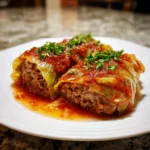 Classic stuffed cabbage rolls made with tender cabbage leaves filled with a savory mixture of ground meat and rice, slowly simmered in a rich tomato sauce for a comforting traditional meal.