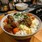 A warm and comforting beef bowl made with tender sautéed beef, rich garlic butter, and simple seasonings, served over fluffy rice for an easy and satisfying meal.