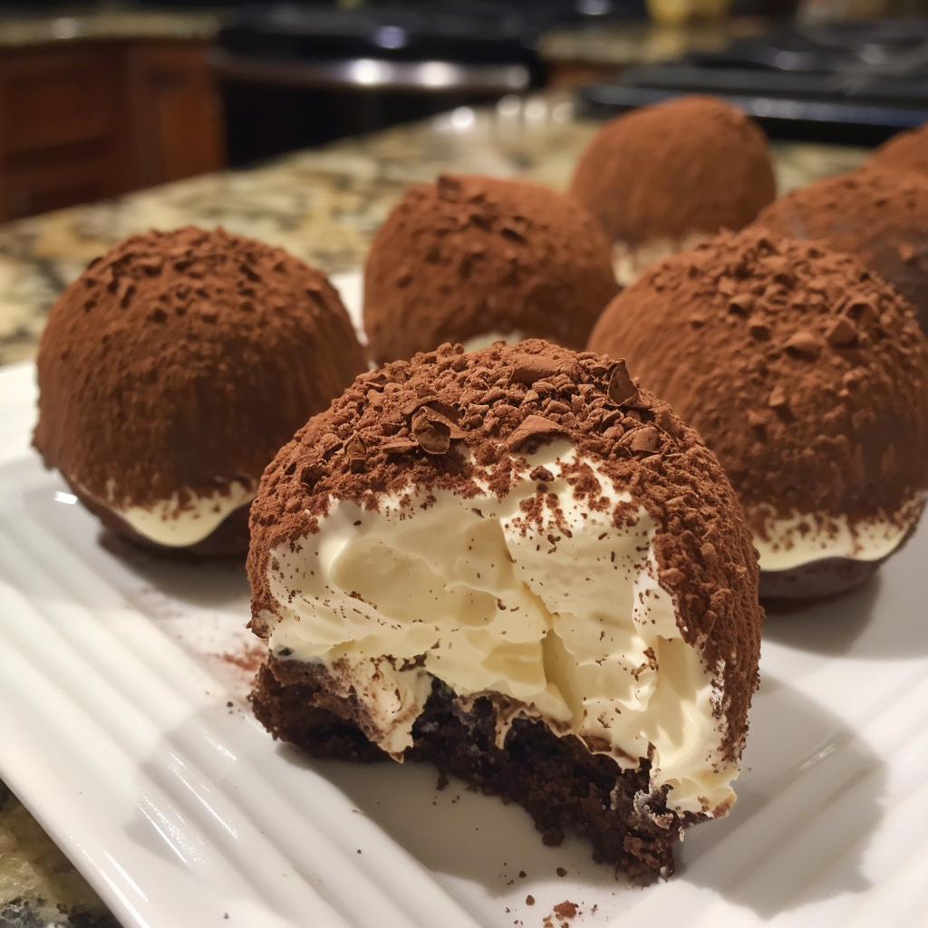 Decadent Tiramisu Truffles are a bite-sized twist on the classic Italian dessert, combining coffee-soaked ladyfingers, mascarpone, and a rich chocolate coating for a luxurious treat.