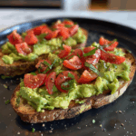 Smashed Avocado Bruschetta is a quick, fresh, and flavourful recipe that brings together creamy avocado, crisp toasted bread, juicy tomatoes, and vibrant herbs. It’s ideal when you want something easy yet elegant, whether for company or just a snack. The beauty is in its simplicity—but the results are always impressive. If you like, I can send you a printable recipe card with metric measurements too.