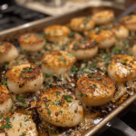 For a full one-pan meal, scatter asparagus, cherry tomatoes, or thinly sliced zucchini around the scallops. The veggies soak up the garlicky drippings—hello, flavor bomb.