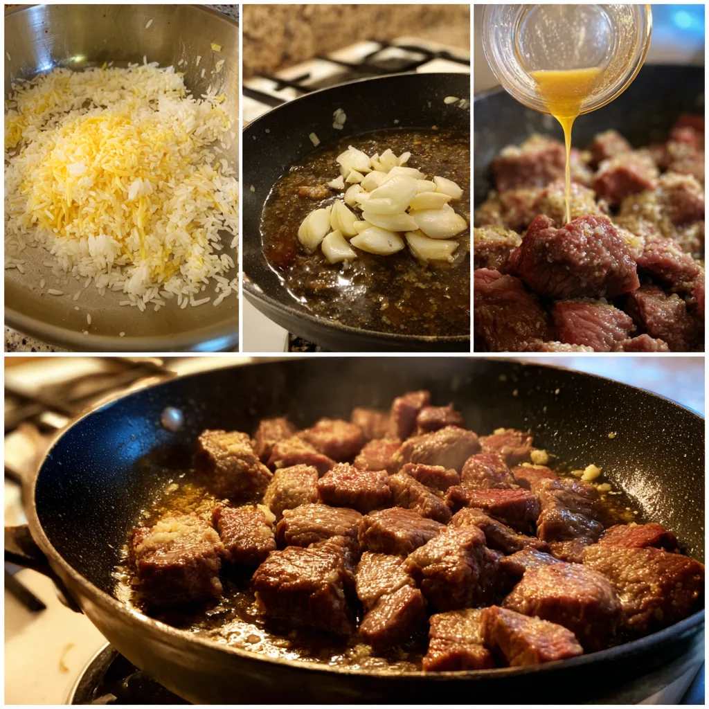 Garlic Butter Beef & Rice Skillet Magic – A Rich, One-Pan Comfort Classic