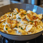 When bold Southern heat meets creamy Italian comfort, you get a dish that’s impossible to resist: Garlic Butter Chicken Tortellini with Cajun Alfredo Sauce. This isn’t your average pasta dinner—it’s a one-skillet flavor bomb that’s quick enough for weeknights, but impressive enough to serve guests.