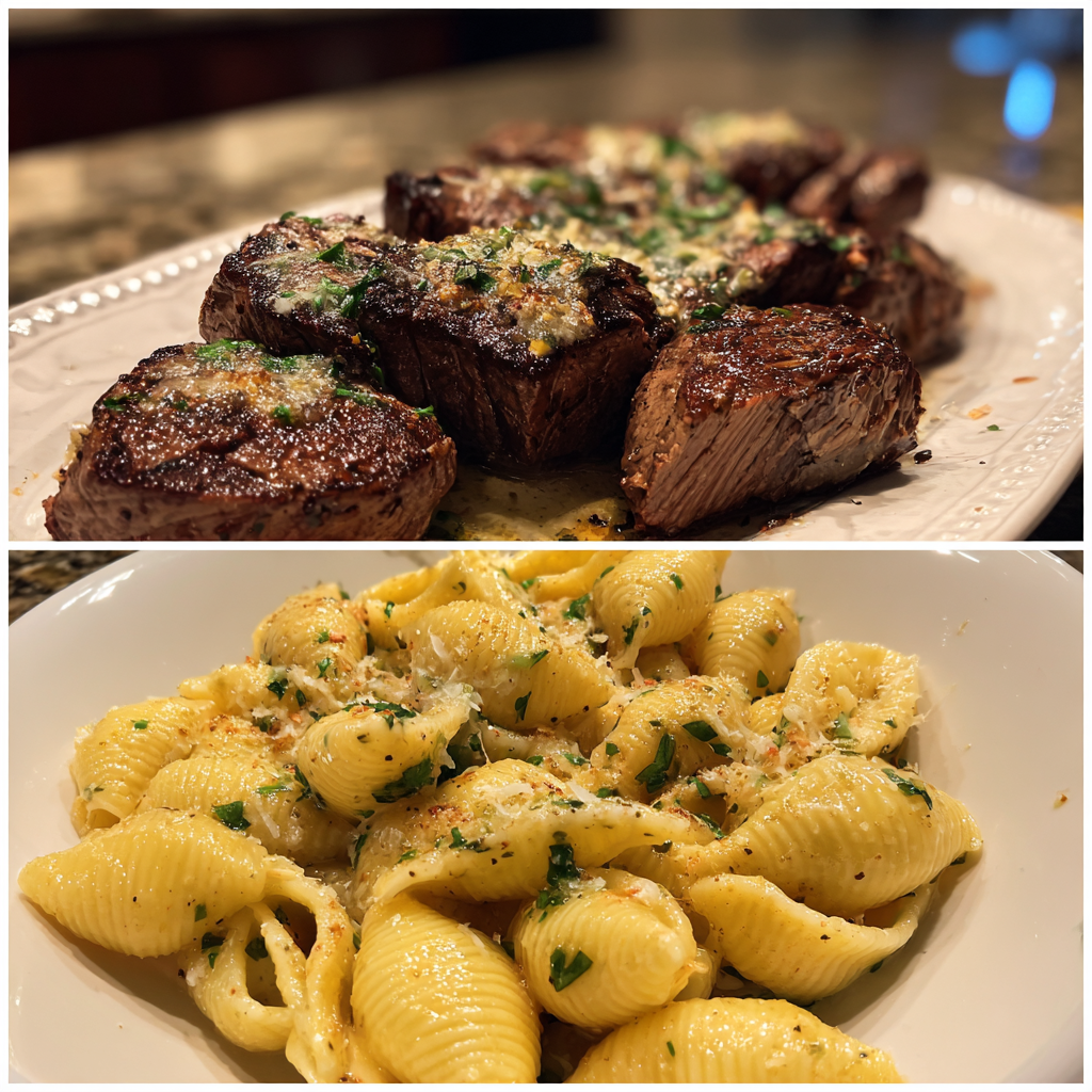 Garlic Butter Steak Bites & Creamy Parmesan Shells: A Restaurant-Style Dinner at Home