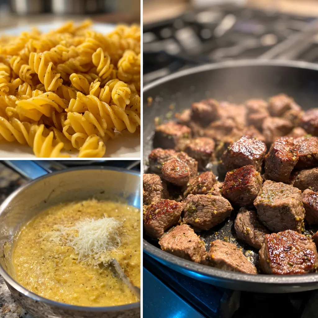 Garlic Butter Steak Bites & Spicy Cajun Alfredo Twisted Pasta – The Ultimate Comfort Dinner