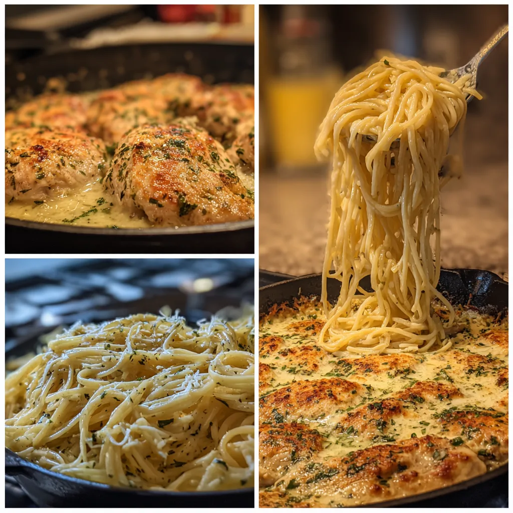 A comforting baked pasta dish made with tender chicken, creamy garlic Parmesan sauce, and melted cheese, perfect for an easy family dinner.