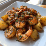 Garlic Shrimp Potatoes is the kind of dish that feels rustic yet indulgent, bringing together golden, crisp potatoes and tender shrimp coated in aromatic garlic butter. It is uncomplicated, filling, and deeply satisfying, ideal for evenings when you want something hearty without spending hours in the kitchen. The balance between the buttery garlic sauce and the natural sweetness of shrimp makes this recipe stand out. The potatoes add a grounding, comforting element, soaking up the flavours beautifully. I especially like how flexible the preparation is—whether you pan-fry the potatoes until crisp or roast them to deepen the flavour, the final dish still comes together seamlessly. I tried this once using smoked paprika in the butter, and it added a warm, mellow undertone that paired wonderfully with the shrimp. This is the kind of reliable, crowd-pleasing recipe you’ll turn to repeatedly.