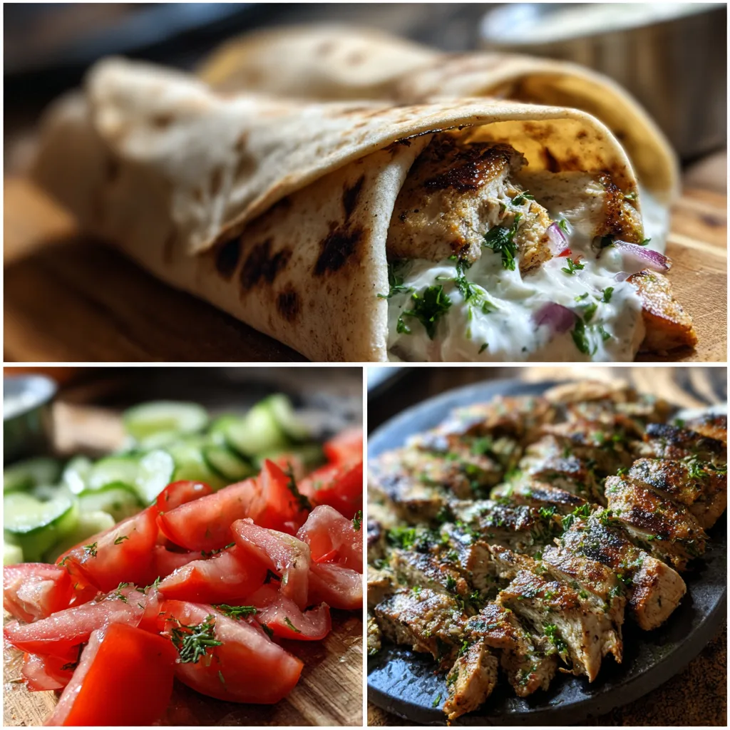 Flavorful Greek-style grilled chicken wraps filled with tender marinated chicken, fresh vegetables, and a creamy garlic yogurt sauce wrapped in soft flatbread.