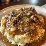 A comforting classic featuring seasoned ground beef simmered in a rich brown gravy, served over creamy mashed potatoes. Simple, hearty, and perfect for a weeknight dinner.
