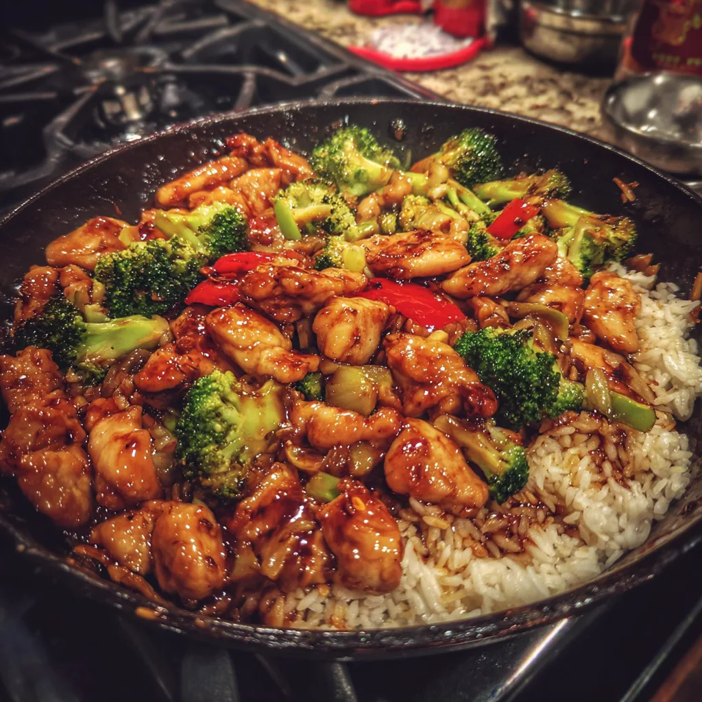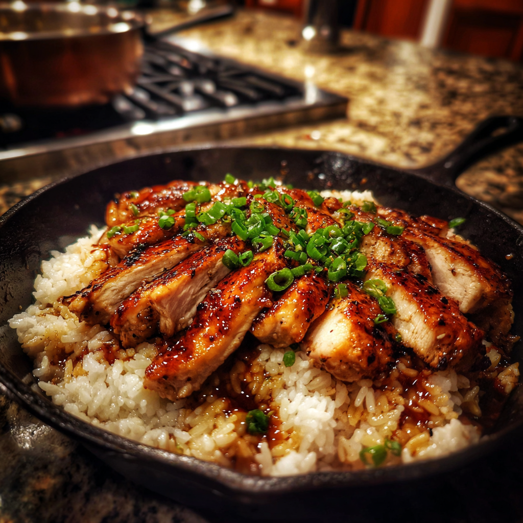 A quick and flavorful skillet meal inspired by Japanese hibachi cooking, featuring tender chicken, fried rice, vegetables, and a savory soy-based sauce.