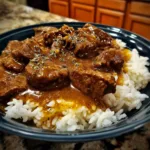 Melt-In-Your-Mouth Beef Tips in Gravy is a hearty, savory comfort dish featuring tender slow-simmered beef cooked in a rich, flavorful brown gravy—perfect over mashed potatoes, noodles, or rice.
