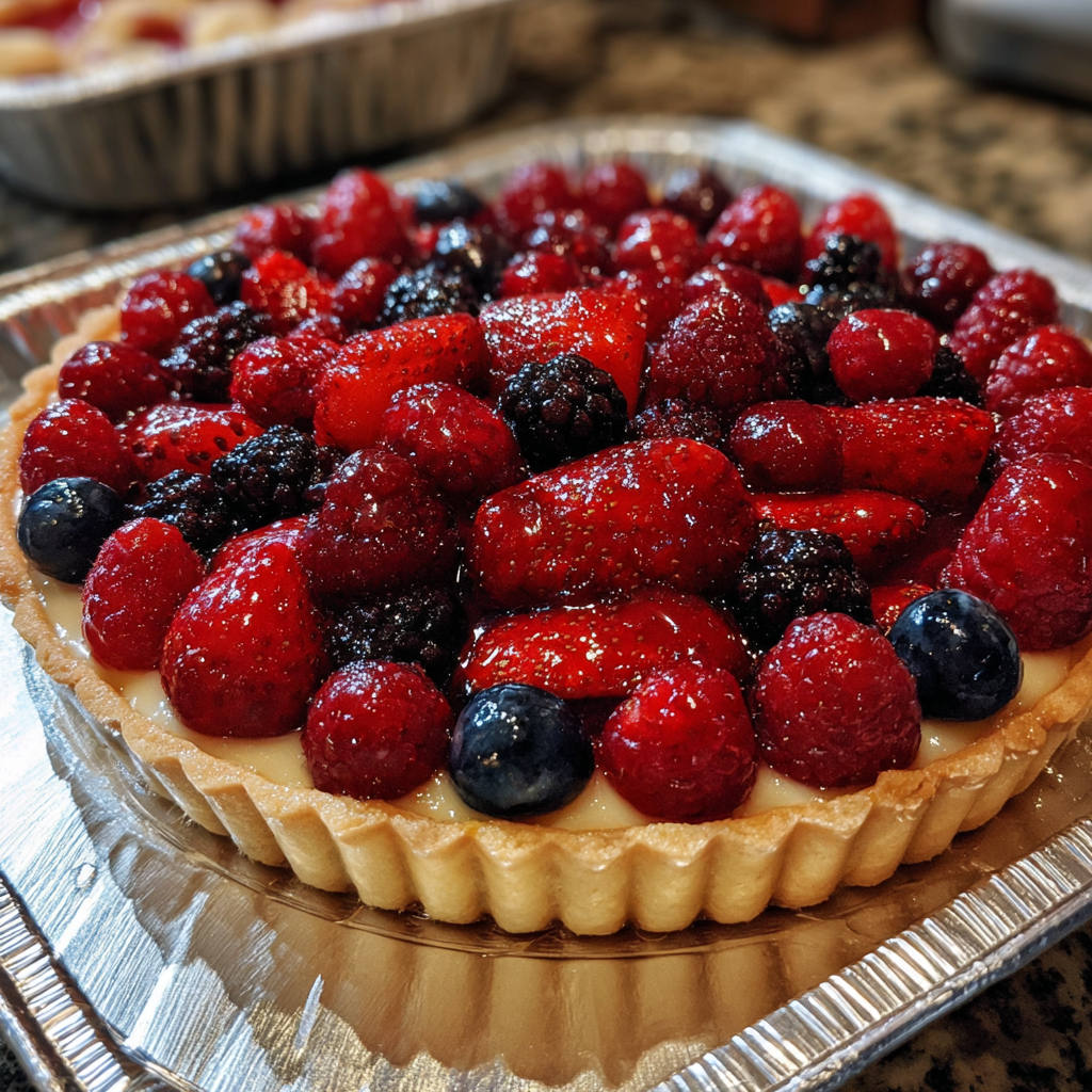 A tart crust gives the dessert structure and a delicate buttery crunch. Whether you bake one from scratch or use a ready-made shell, it forms the perfect foundation for the rich filling and berry topping.