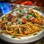 - Cook spaghetti according to package instructions until al dente, then drain and set aside.