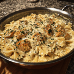 Mozzarella Garlic Butter Chicken Bowties in Cheesy Cream is the ultimate comfort food—a decadent combination of tender chicken, rich garlic butter, and melt-in-your-mouth mozzarella cream sauce that clings beautifully to bowtie pasta. It’s elegant enough for special occasions yet simple enough for weeknights. Whether you’re feeding family or hosting friends, this creamy pasta delivers restaurant-level flavor right from your kitchen. Serve it hot, garnish with herbs, and enjoy every luxurious, cheesy bite.