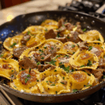 One-skillet garlic butter steak and cheese ravioli is the ultimate indulgent dinner that brings together tender, juicy steak, cheesy ravioli, and a rich garlic butter sauce—all made in a single pan. This dish is both elegant and easy, making it a perfect choice for busy weeknights when you want something satisfying without the fuss of multiple pots and pans. The combination of seared steak and pillowy ravioli, coated in buttery garlic goodness, creates a restaurant-quality meal that feels indulgent yet approachable. What makes this recipe especially appealing is its versatility—you can add vegetables, adjust the seasoning, or even swap out proteins to suit your preferences. With minimal prep and maximum flavor, this one-skillet wonder is a comforting dish that is sure to become a family favorite.