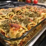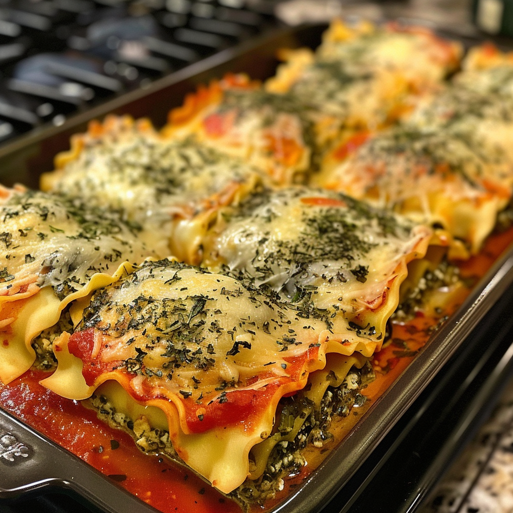 Start by cooking your lasagna noodles in salted water until just al dente. Don’t overcook — you want them soft but firm enough to roll. Rinse with cold water to stop the cooking.