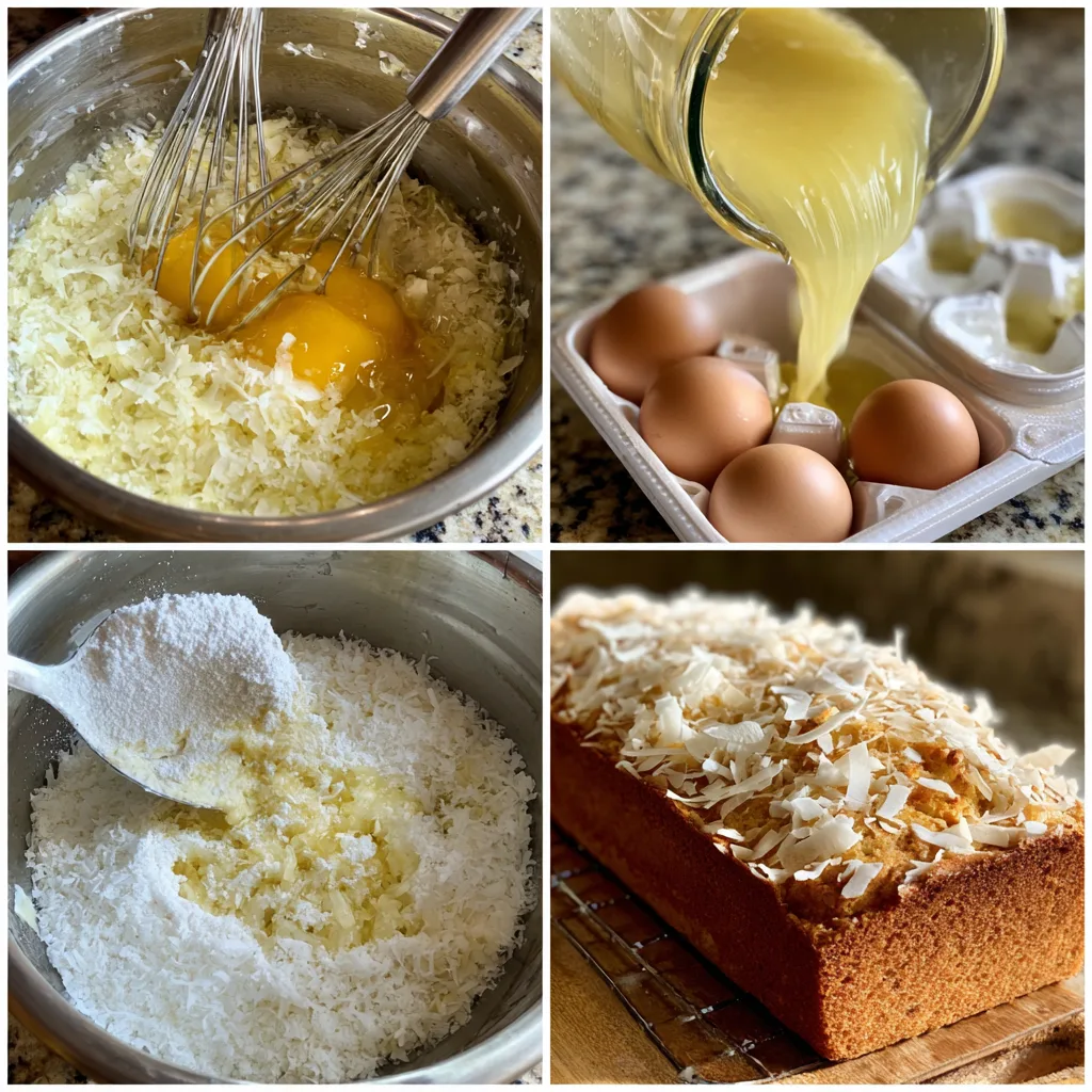 Gradually add the dry ingredients to the butter mixture, alternating with the coconut milk. Mix gently until just combined to avoid overworking the batter. Fold in the drained crushed pineapple and shredded coconut until evenly distributed.