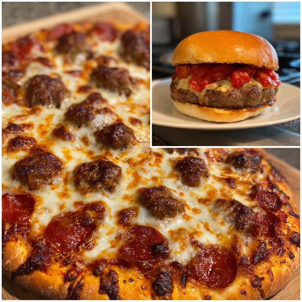 Pizza Burgers combine everything you love about juicy cheeseburgers and cheesy pizza into one irresistible meal. Think seasoned beef patties topped with marinara sauce, melty mozzarella, and your favorite pizza toppings, all served on a toasted bun. Each bite is saucy, cheesy, and savory, making these burgers perfect for weeknight dinners, family gatherings, or game-day meals. They’re kid-friendly, customizable, and quick to prepare, bringing the flavors of pizza night and burger night together in one easy dish. Whether you love classic pepperoni, veggie-loaded pizzas, or extra cheese, you can make these burgers exactly how you like them. It’s comfort food at its best—messy, cheesy, and downright delicious.