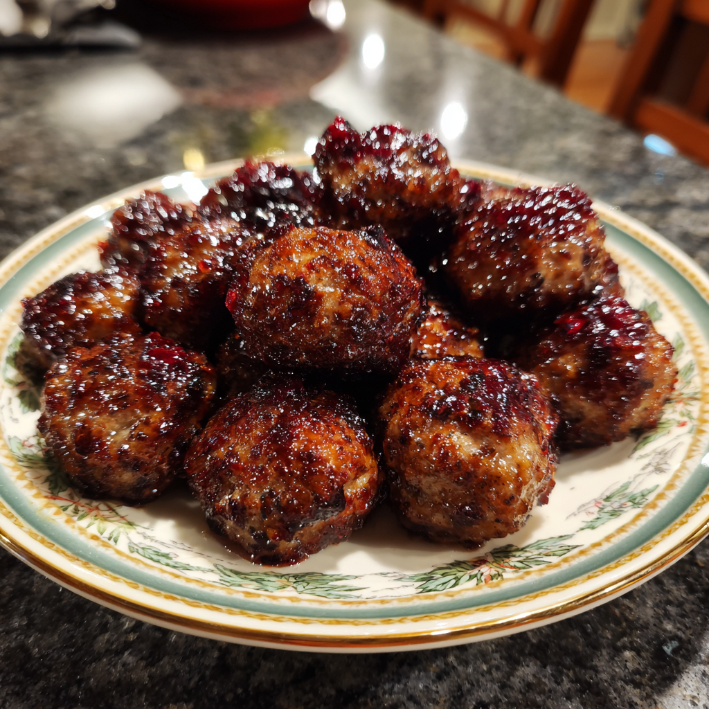 Sweet, tangy, and savory meatballs simmered in a festive cranberry-barbecue sauce—perfect for quick holiday appetizers or potlucks.