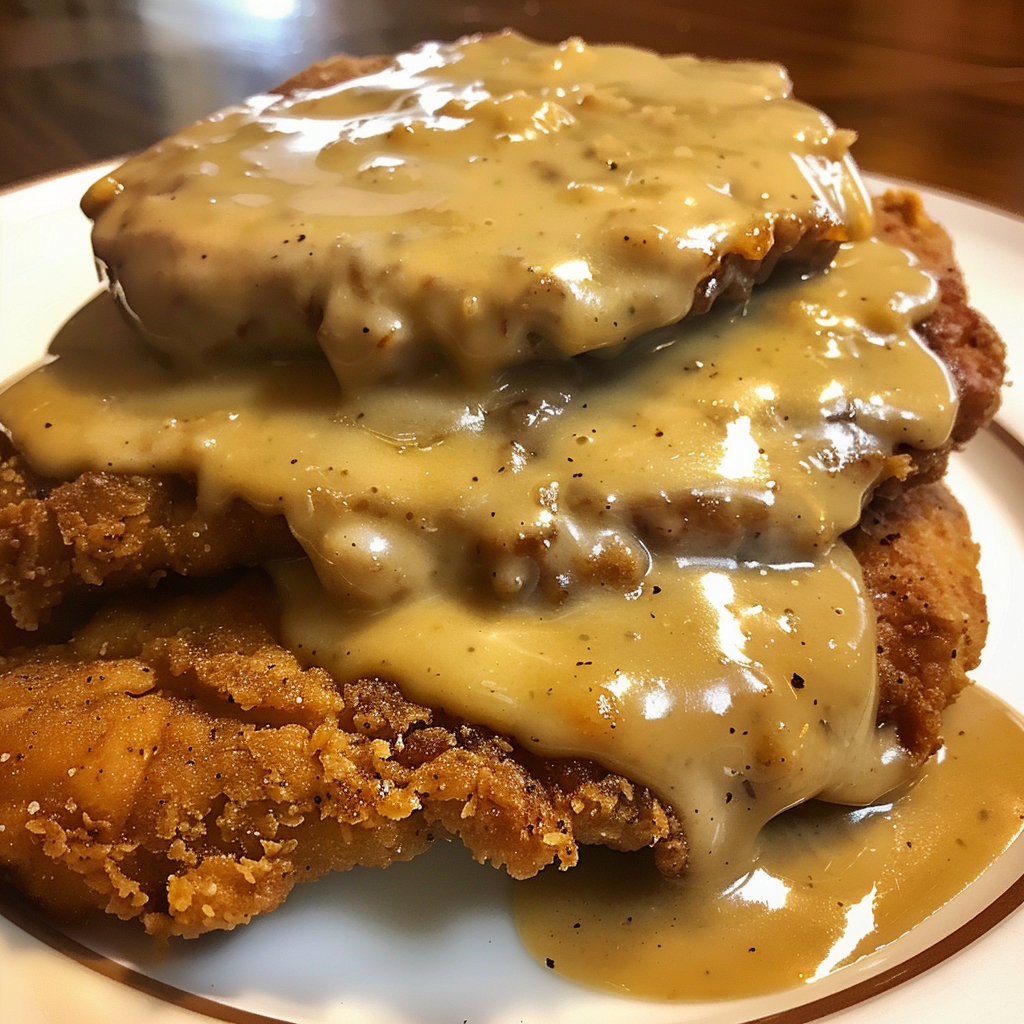 Serve the crispy chicken-fried steaks smothered with warm, creamy gravy.