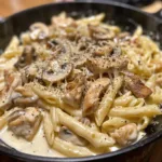 A rich, creamy chicken and mushroom pasta made with tender pieces of chicken, sautéed mushrooms, garlic, and a luscious cream sauce. Comforting, hearty, and ready in under an hour — perfect for a cozy dinner.