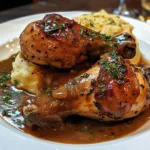 A comforting classic featuring crispy roasted chicken drumsticks served with rich homemade gravy and creamy mashed potatoes — the perfect hearty dinner for any night of the week.