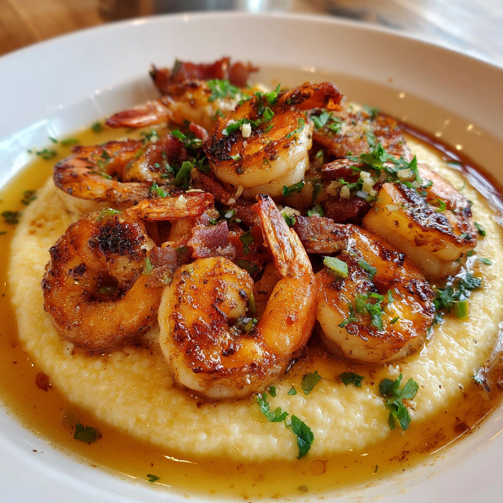 Leftovers can be stored in airtight containers in the refrigerator for up to two days. Reheat grits gently on the stovetop with a splash of cream or broth to restore their texture. Shrimp should be reheated briefly over low heat to avoid overcooking.