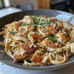 Savory Cajun Chicken with Creamy Parmesan Pasta Linguine is a bold, flavorful dish featuring tender, spicy Cajun-seasoned chicken served over silky linguine coated in a rich, garlicky Parmesan cream sauce. A perfect balance of spice and comfort in every bite.