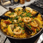 Seafood paella is one of those remarkable dishes that brings unmistakable Spanish charm straight to your table. With its golden saffron rice, beautifully arranged shellfish, and deeply aromatic broth, it is both rustic and luxurious. I love serving this when I want something impressive yet comforting—an all-in-one meal that speaks for itself. What makes seafood paella especially enjoyable is how customizable it can be; you can scale it for gatherings, swap in your favourite seafood, and adjust the aromatics to suit your taste. When I tried this recipe with homemade fish stock, the flavour was noticeably richer, though a good-quality store-bought broth also works wonderfully. Whether you’re new to paella or already a fan, this version gives you a reliable foundation you can revisit and reinvent as often as you like.