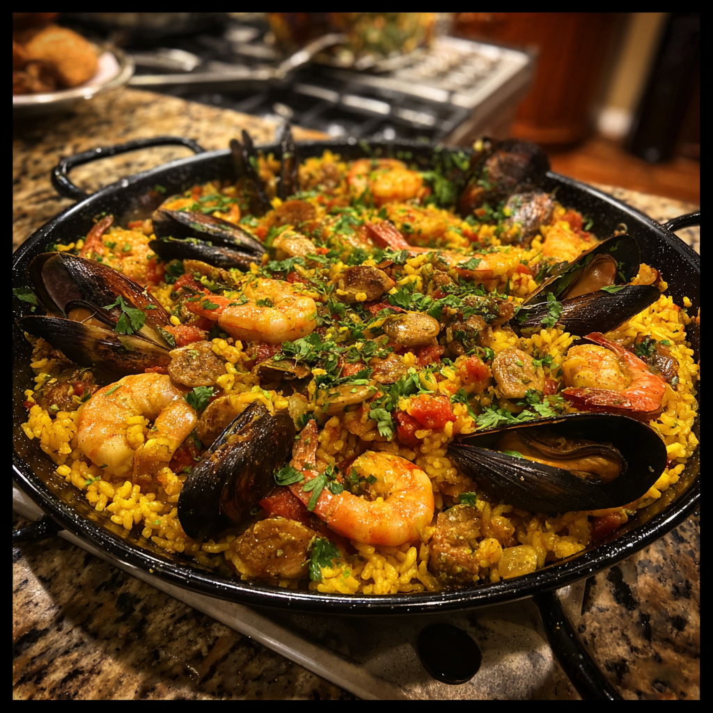 A classic Spanish rice dish loaded with fresh seafood, saffron, and aromatic vegetables, simmered to perfection.