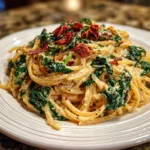 Spaghetti & Spinach with Sun-Dried Tomato Cream Sauce is a refined yet comforting pasta dish that highlights rich, Mediterranean-inspired flavors. Easy to prepare and endlessly customizable, it is a recipe that delivers consistent satisfaction and deserves a place in any home cook’s repertoire.