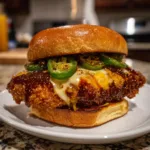 This Spicy-Sweet Fried Chicken Sandwich with Jalapeño is the perfect balance of crispy, juicy, and bold flavors — featuring golden fried chicken glazed with a spicy honey sauce, creamy slaw, and fresh jalapeño slices all tucked inside a toasted brioche bun. It’s an irresistible fusion of heat and sweetness in every bite.