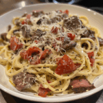 This Steak Alfredo Spaghetti with Creamy Parmesan and Roasted Red Peppers is a dish that brings comfort, luxury, and flavor together in one satisfying bowl. The richness of the sauce, the tenderness of the steak, and the sweetness of the peppers create a perfect harmony. It’s proof that you don’t need a fancy restaurant to enjoy a gourmet meal—just quality ingredients and a bit of time in your kitchen. Once you try this, it’s sure to become a favorite in your recipe rotation.