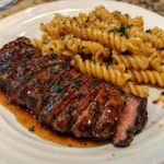 Sticky honey garlic steak and rotini is the kind of dish that delivers bold flavor with comforting familiarity. It combines tender, seared steak with pasta coated in a glossy, sweet-and-savory sauce that clings beautifully to every spiral of rotini. I first made this recipe when I wanted something hearty and indulgent that still felt quick enough for a weeknight dinner. The honey provides gentle sweetness, the garlic adds depth and aroma, and the sauce thickens just enough to feel luxurious without being heavy. Rotini is especially effective here because it traps the sauce in its ridges, ensuring every bite is well seasoned. This recipe is approachable, flexible, and incredibly satisfying, making it a dependable choice when you want a meal that feels generous, flavorful, and comforting.