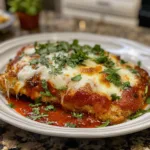- Bake for 20–25 minutes, until chicken is cooked through (165°F/74°C) and cheese is melted and bubbly.